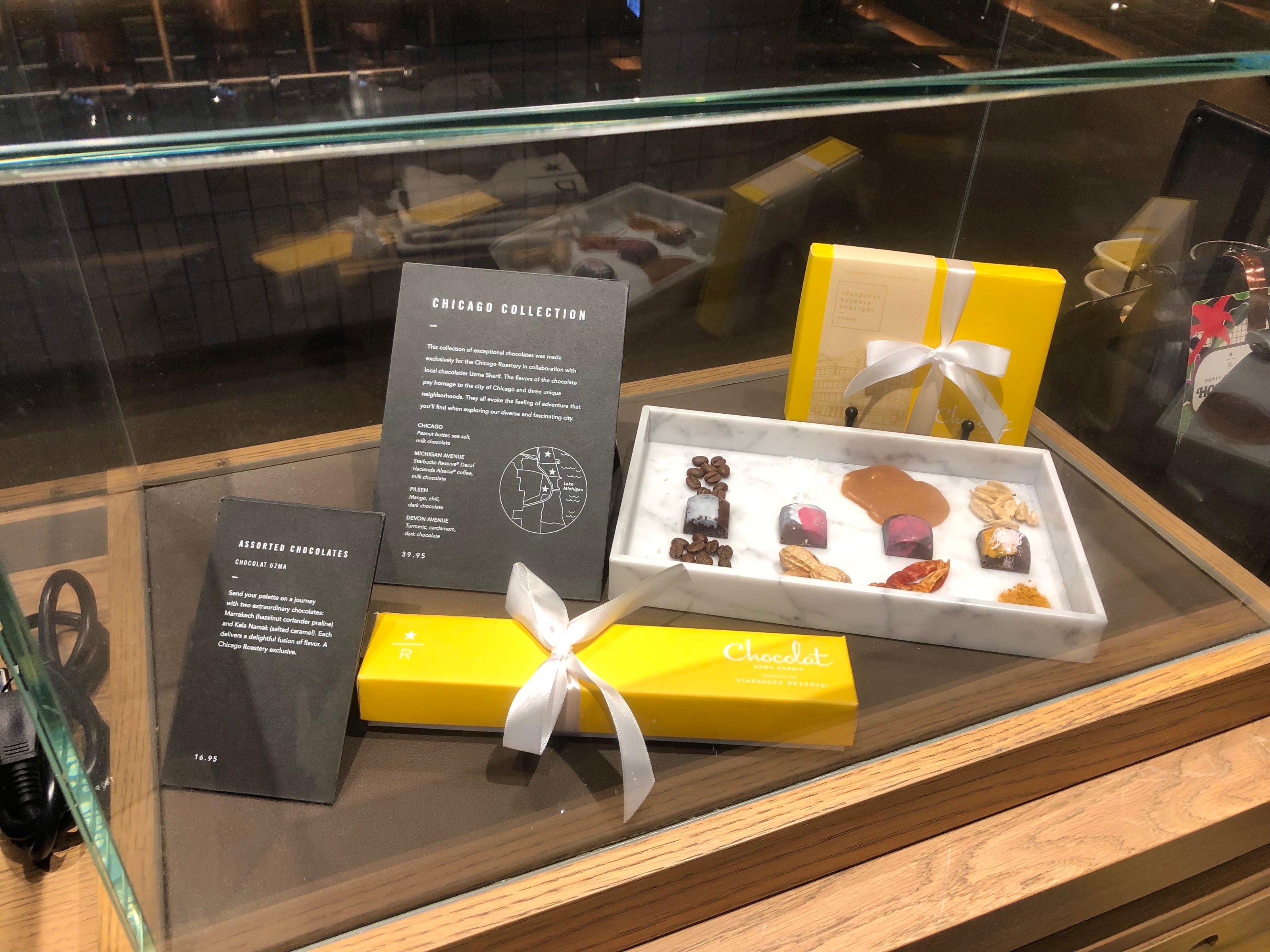 The Chicago Collection, available only at Starbucks Roastery Reserve, is a unique box of chocolates that celebrates the flavors of various